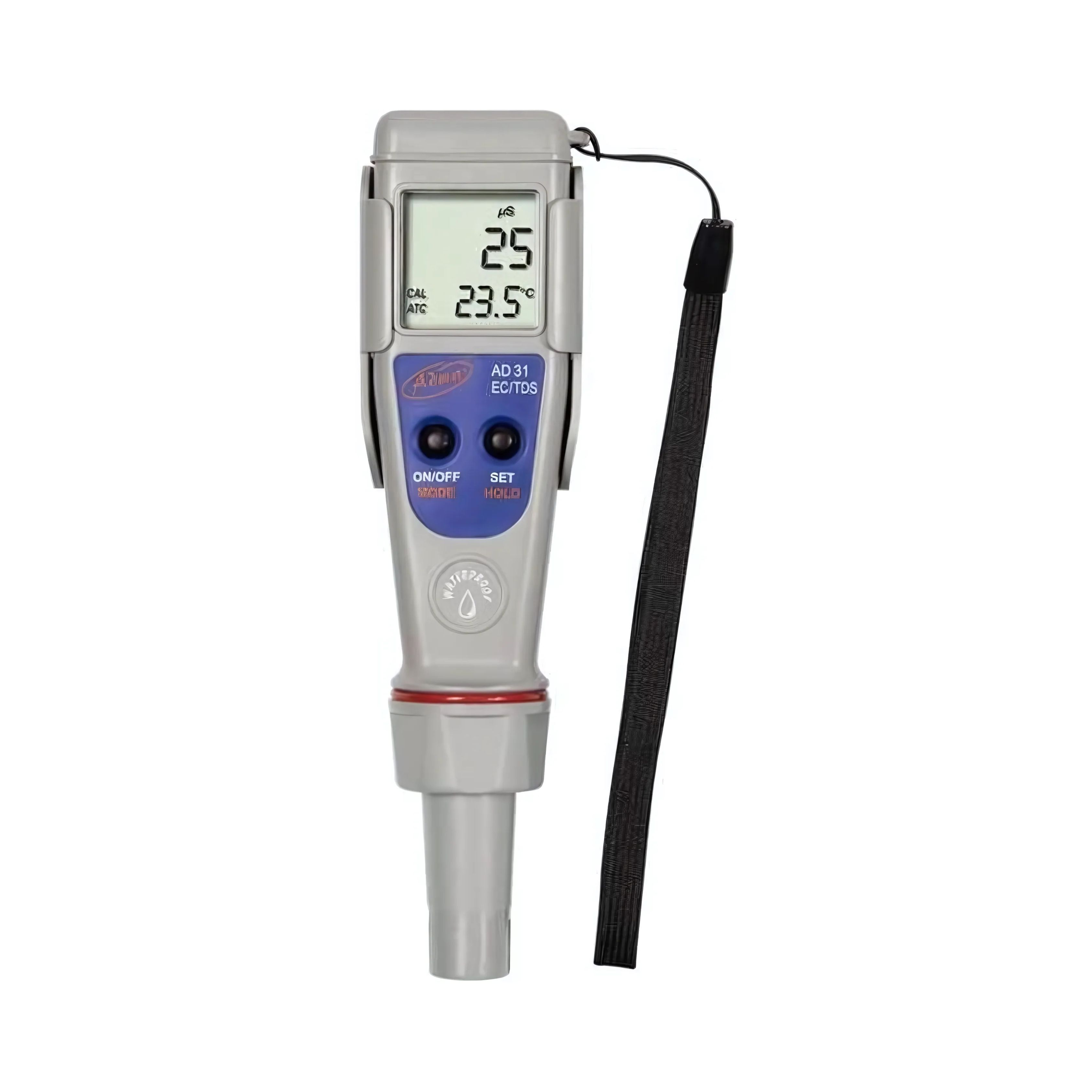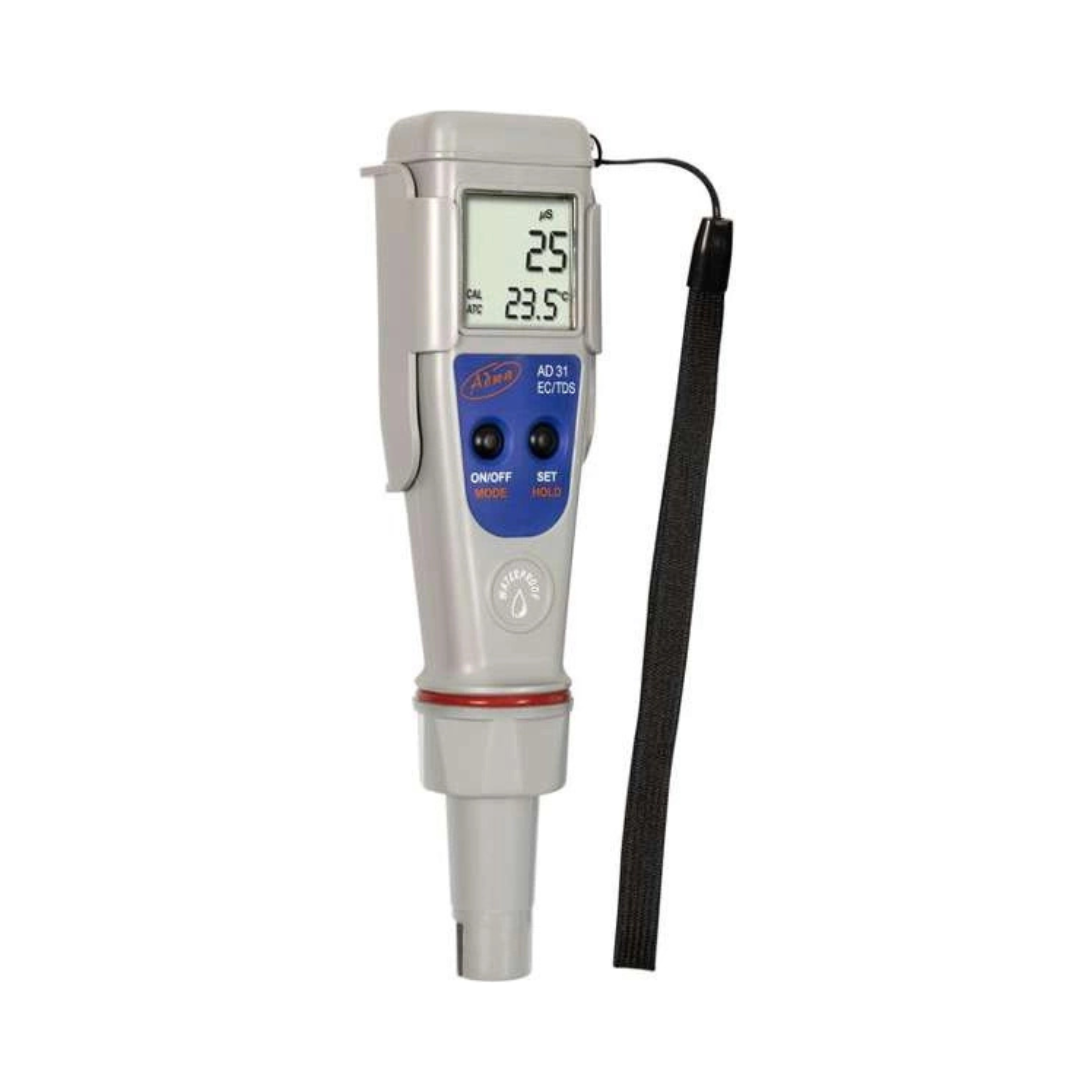هدایتسنج یا شوریسنج قلمی ADWA AD31 ابزاری دقیق و قابلاعتماد برای اندازهگیری هدایت الکتریکی (EC)، کل مواد محلول (TDS) و دمای مایعات است. این دستگاه با محدوده اندازهگیری تا 3999 µS/cm برای EC و 2000 ppm برای TDS، گزینهای مناسب برای آزمایش آب آشامیدنی، آکواریومها، پرورش ماهی، کشاورزی هیدروپونیک و کنترل کیفیت آب در صنایع مختلف به شمار میرود. وجود قابلیت جبران دمایی خودکار (ATC) باعث میشود نتایج در شرایط دمایی مختلف با دقت بالاتری نمایش داده شوند. همچنین امکان کالیبراسیون آسان یک نقطهای و الکترود قابل تعویض، استفاده طولانیمدت از دستگاه را سادهتر میکند. صفحه نمایش LCD دو ردیفه، مقادیر EC یا TDS و دما را همزمان نشان میدهد و قابلیت HOLD برای ثابت نگه داشتن اعداد اندازهگیریشده در نظر گرفته شده است. طراحی مقاوم با استاندارد IP67، دستگاه را ضد آب و گردوغبار کرده و برای کار در شرایط سخت ایدهآل ساخته است. این هدایتسنج سبک و قابل حمل با چهار باتری دکمهای کار میکند و با داشتن خاموشی خودکار، مصرف انرژی را بهینه میسازد.