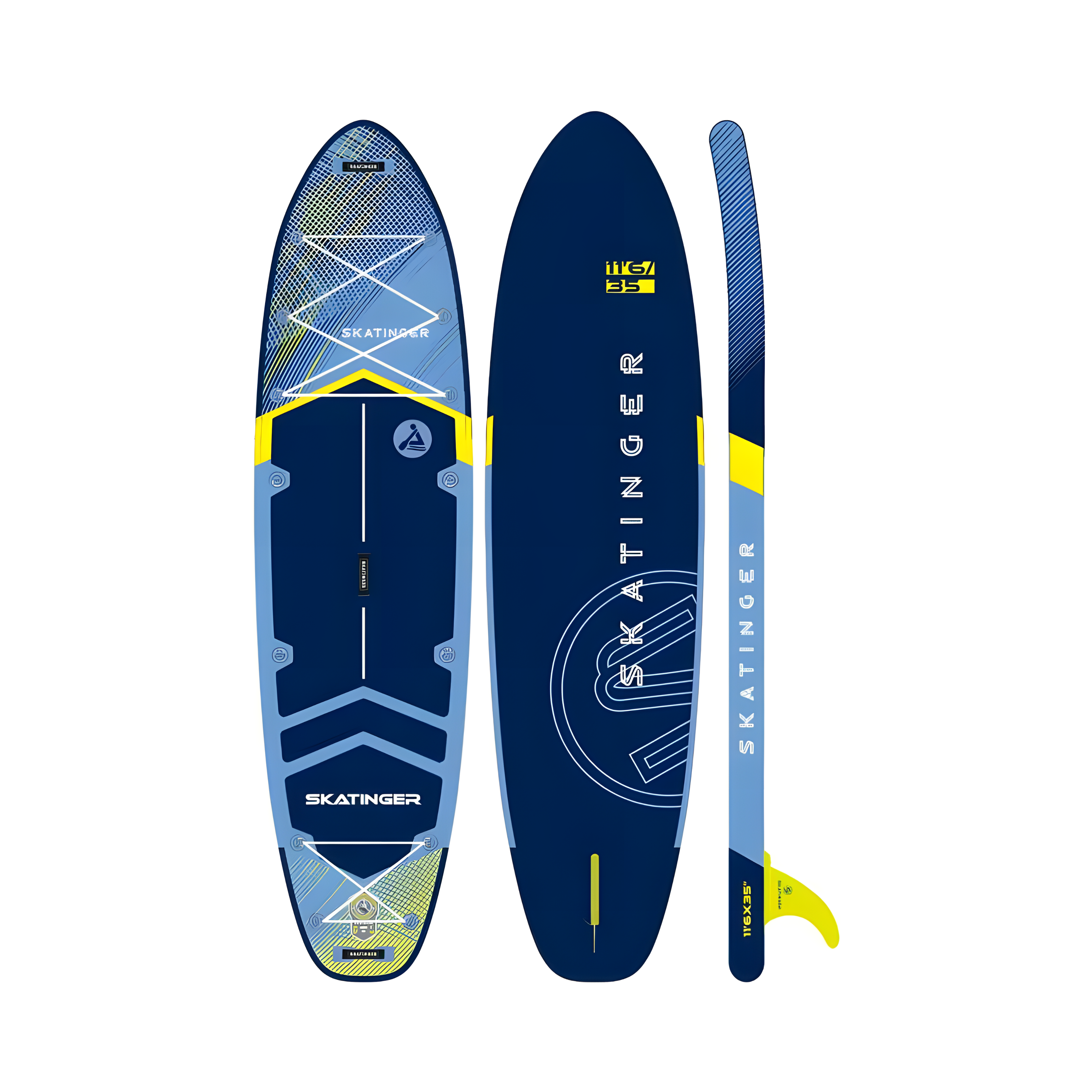 پدل بردهای اسکاتینگر Skatinger انتخابی ایده‌آل برای ماجراجویان و علاقه‌مندان به ورزش‌های آبی هستند. این برند با طراحی مدرن و استفاده از متریال باکیفیت مثل PVC چندلایه، تخته‌هایی مقاوم، سبک و بادوام ارائه می‌دهد که برای استفاده در دریا، رودخانه یا دریاچه مناسب هستند. مدل‌های مختلف Skatinger شامل آل‌راند، تورینگ و فیتنس بوده و هم برای مبتدی‌ها و هم حرفه‌ای‌ها گزینه‌ای عالی محسوب می‌شوند. ویژگی‌هایی مثل ثبات بالا، ظرفیت تحمل وزن مناسب و سطح ضدلغزش، امنیت و راحتی بیشتری در زمان پارو زدن فراهم می‌کند. بیشتر پدل بردهای Skatinger به صورت inflatable عرضه می‌شوند و به‌همراه لوازم جانبی کاربردی مانند پمپ دستی، کیف حمل و پدل ارائه می‌گردند تا تجربه‌ای کامل و آسان در حمل‌ونقل و استفاده داشته باشید. اگر به دنبال یک تخته مطمئن و باکیفیت برای تفریح، یوگا یا تورینگ هستید، پدل برد Skatinger می‌تواند بهترین انتخاب شما باشد.